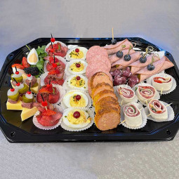hapjes per stuk € 1,10. De hapjes worden in de mix geleverd. De helft plakjes van onze heerlijke worsten. De andere helft luxe hapjes.