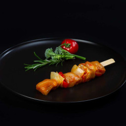 Deze spies bevat stukjes varkensvlees met stukjes groente. Lekker voor op de barbecue, maar dit product fleurt ook je barbecue op met kleur.