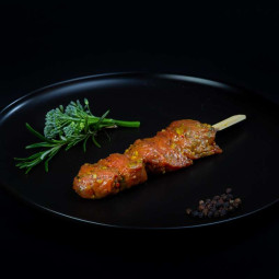 In knoflook gemarineerde stukjes biefstuk aan een spies. Per 3 stuks voordeliger: 3 voor € 6,95.